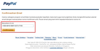 -->Buka mail Selamat datang di Paypal, dan copy KODE Konfirmasi